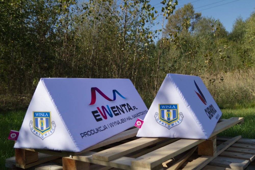 • Dreieck Softbande aus Schaumstoff mit Logo Druck