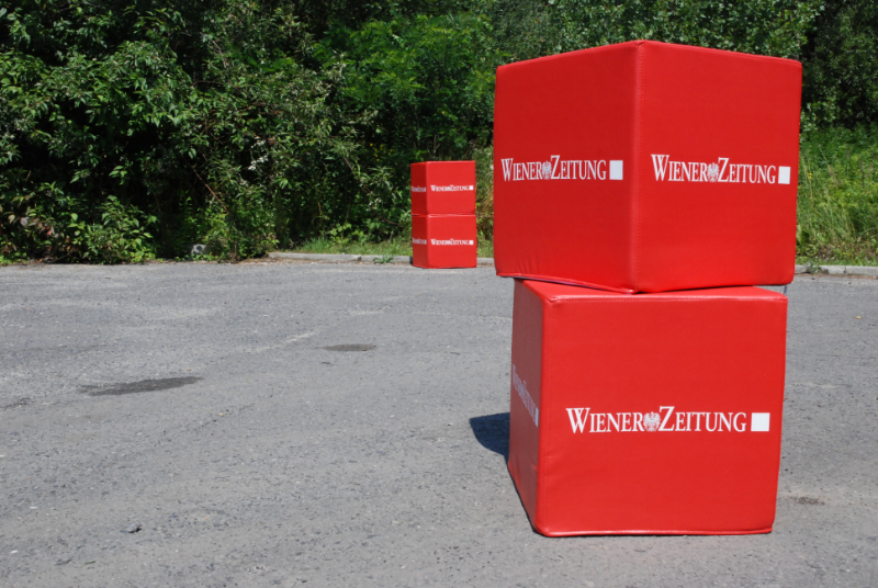 Das bedruckte Design kann je nach Vorliebe entweder einfarbig oder bunt sein und bietet somit eine flexible Möglichkeit zur Anpassung an das gewünschte Erscheinungsbild. Je nach Einsatz bedrucken wir die Sitzwürfel 5- oder 6-seitig. Standardmäßig bleibt der Boden der Sitzwürfel schwarz, damit der Schmutz nicht sofort sichtbar wird. Die Farben des Druckes sind leuchtend und kräftig. Die Konturen der Logos und Schriftzüge wirken scharf und präzise. Der Würfel Kern besteht aus einem speziellen Schaumstoff mit vergrößerter Dichte, wodurch er lange seine ursprüngliche Form behält – die Würfelgrafik präsentiert sich einwandfrei.